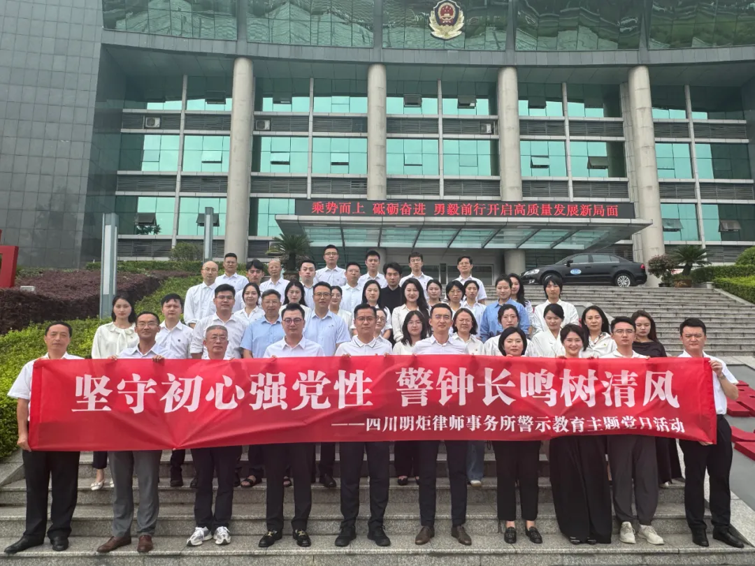 为庆祝建党104周年,扎实开展深入贯彻中央八项规定精神学习教育,持续深化党风廉政和清廉明炬建设,强化党员骨干廉洁自律意识,筑牢拒腐防变思想防线,2025年7月2日,以“坚守初心强党性 警钟长鸣树清风”为主题,四川明炬律师事务所党委班子、纪委班子、支部书记、党员代表及民主党派代表一行40余人,在党委副书记、纪委书记白强,党委副书记霍子诗的带领下到金堂监狱开展警示教育主题党日活动。
