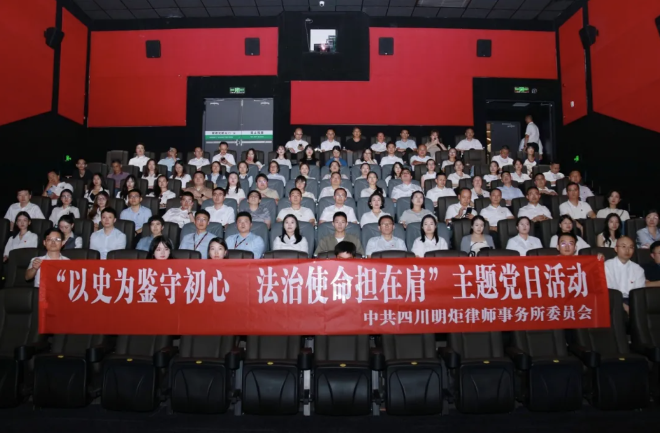 2025年8月15日,正值日本战败投降80周年纪念日,四川明炬律师事务所党委在寰映影城开展“以史为鉴守初心 法治使命担在肩”主题党日活动,组织全所120余名党员集中观看历史题材影片《南京照相馆》。通过重温历史记忆,深切缅怀抗战英烈,传承民族精神,进一步强化党员的历史使命感与时代责任感。
