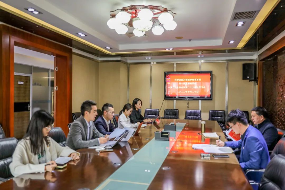 2022年10月20日,为传达学习党的二十大精神,通报、研究支委会工作计划与下一步工作安排,共青团四川明炬律师事务所支部委员会在明炬合伙人会议室召开第一届支委会第二次会议。全体支委成员及秘书参会,明炬党委常务副书记颜波、委员苑卫东同志列席会议并作重要讲话。会议由支部书记胡基洋主持。