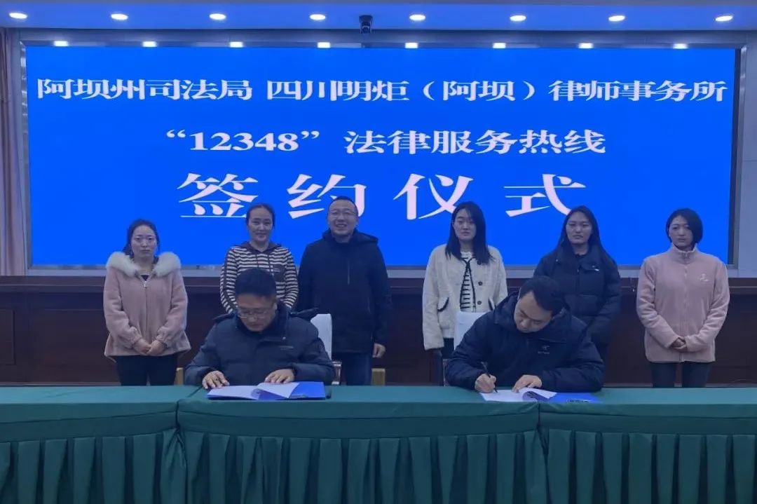 2023年12月27日下午,明炬阿坝分所与阿坝州司法局在州司法局会议室举行“12348”公共法律服务热线签约仪式。