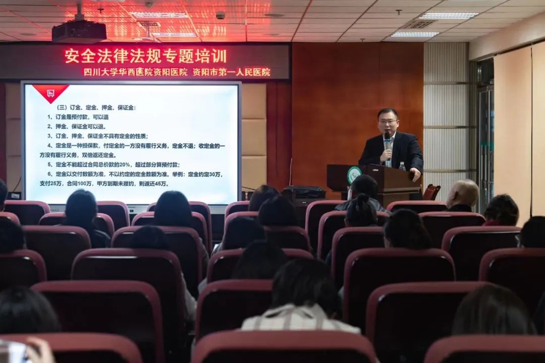 为加强医务人员的法律法规知识学习,使广大医务人员在工作中真正做到学法、知法、懂法,明炬资阳分所主任敖翔受邀为资阳市第一人民医院开展普法专题讲座。