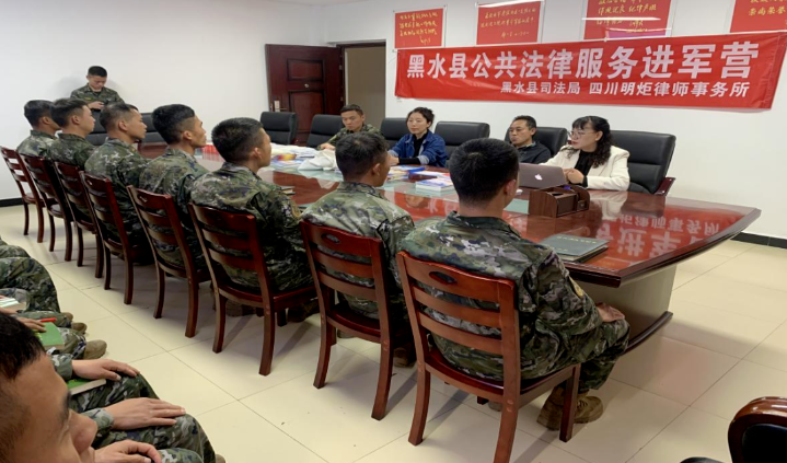 为加强军营法治建设,切实维护军人合法权益,2023年6月14日,黑水县司法局联合黑水县退役军人事务局、明炬阿坝分所为武警黑水中队开展“送法进军营”法律宣传活动。