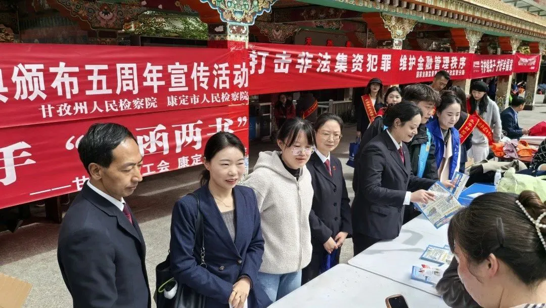 2025年5月15日上午,值《中华人民共和国民法典》颁布五周年之际,四川明炬律师事务所甘孜分所联合甘孜州人民检察院、康定市人民检察院、甘孜州总工会及康定市总工会,于康定市共同举办《民法典》普法宣传活动。明炬甘孜分所律师王丹萍、兰可凭借深厚的法学功底与丰富的实务经验,全程深度参与现场普法服务,成为活动的骨干力量。