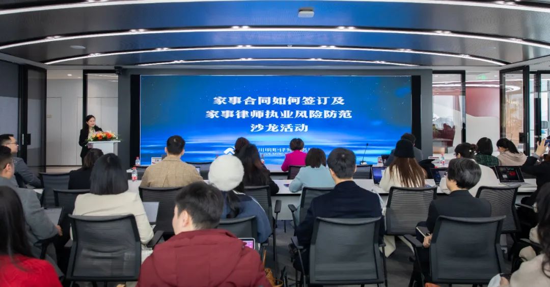 2023年2月10日,四川明炬律师事务所婚姻家事与私人财富管理法律业务部(以下简称“婚家部”)举办的“家事合同如何签订及家事律师执业风险防范沙龙活动”在明炬大讲堂圆满结束。本次活动邀请的蒲毅、杨竹一、王连鑫等婚姻家事专业律师从不同角度进行了主题分享,张承凤律师给予了点评。活动由明炬婚家部副部长王芬主持,吸引了所内外近百名律师现场聆听与交流。