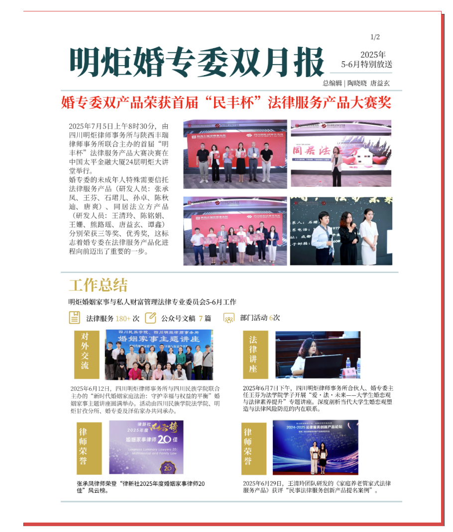 2025年7月30日上午,成都市城市管理行政执法总队组织召开《成都市城市管理综合执法领域行政处罚裁量权适用规定(修订稿)》专家论证暨社会稳定风险评估会。四川明炬律师事务所合伙人、政府与行政法专业委员会副主任龙冠中作为四川省住房城乡建设厅专家库专家受邀参会。