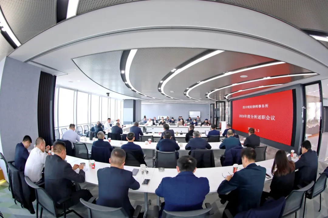 2025年1月3日上午,2024年度分所述职会议在明炬大讲堂顺利召开。此次会议旨在全面总结过去一年中各分所的工作情况,展望未来发展方向,进一步加强总分所的内部沟通与协作。会议由党委书记、主任王宗旗主持。明炬党委、管委会、监事会、执委会班子成员和23家分所负责人、总所部门负责人代表出席会议。