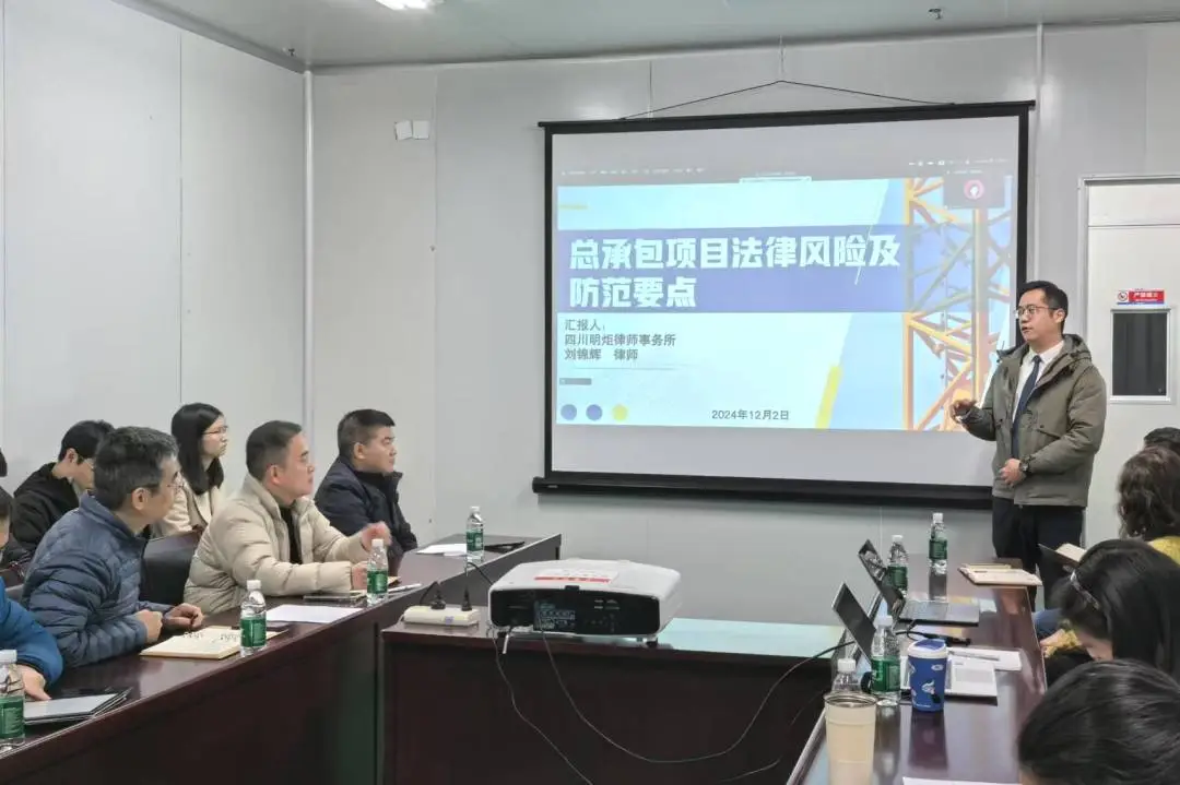 2024年12月2日上午,应中国电力工程顾问集团西南电力设计院有限公司能源规划研究院(以下简称“能研院” )邀请,明炬刘锦辉律师为其开展“总承包工程项目法律风险及防范要点”专题培训。此次培训吸引了能研院近30名从事工程与市场相关工作的员工参与。