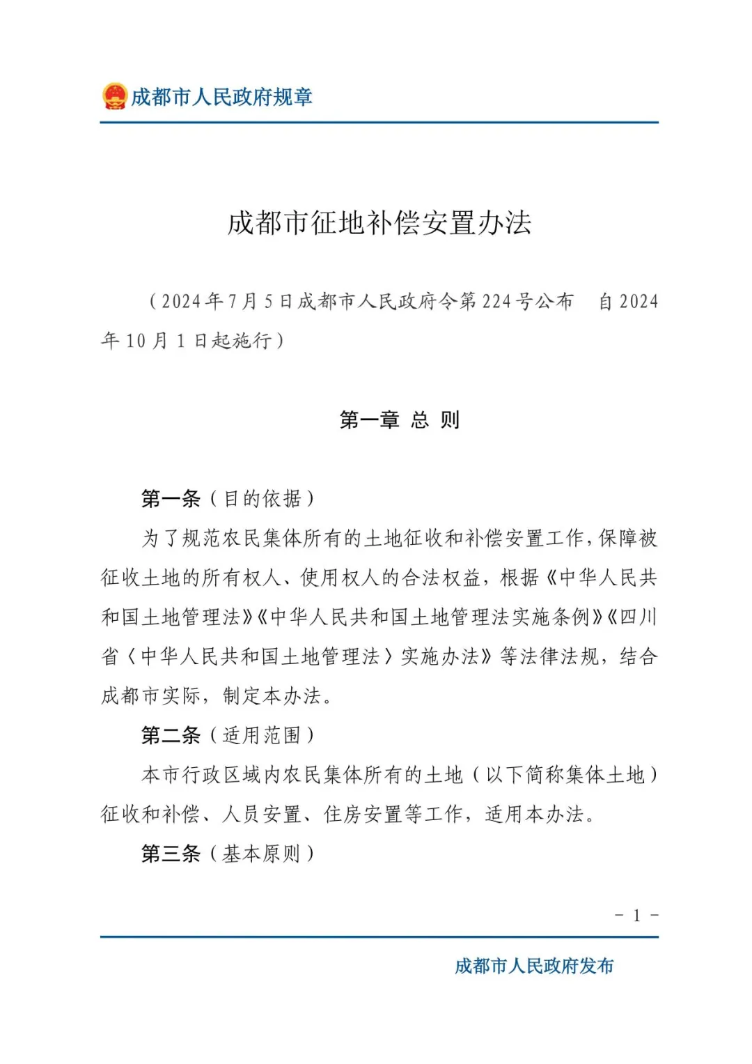 《成都市征地补偿安置办法》(成都市人民政府令第224号)正式公布,自2024年10月1日起施行,该规章为关系广大民生民利的重要政策文件之一。本次地方规章立法,四川明炬律师事务所征迁团队提供了全程立法技术服务。