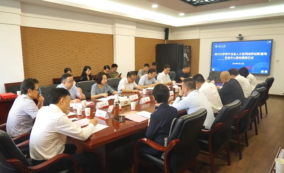2024年7月16日上午,明炬党委书记、主任王宗旗,高级合伙人王德波,合伙人许龄匀应邀参加四川大学涉外法治人才协同培养创新基地实训中心签约授牌仪式。四川大学副校长游劲松出席仪式并见证签约。四川省司法厅律师工作处副处长况玥,四川省律师协会代表及实训中心依托建设单位代表,四川大学相关部处和法学院负责人参加签约授牌仪式。