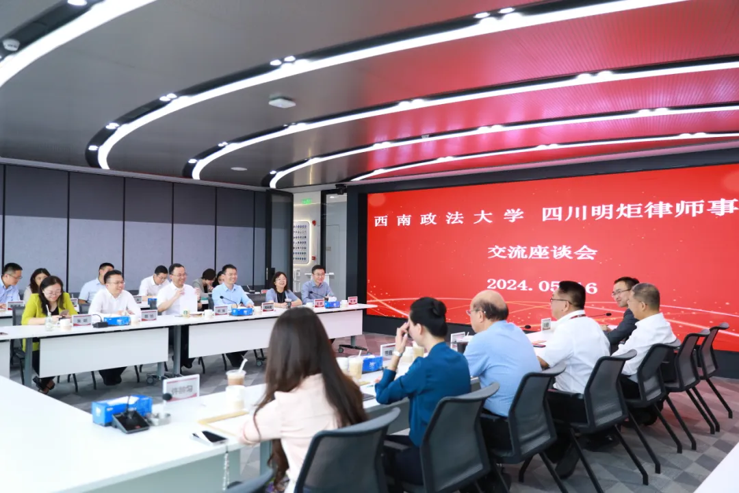 为推动高等教育向培养应用型、技术技能型人才转型发展,拓宽毕业生就业渠道和资源,实现律所与高校合作的协同发展,2024年5月16日下午,西南政法大学党委副书记、校长林维一行9人赴明炬开展访企拓岗专项行动,并就校所人才培养合作开展调研座谈。明炬党委书记、主任王宗旗,监事长范自力,管委会委员李洪斌,执委会委员罗巧,合伙人邓俊杰、许龄匀给予热情接待,陪同林维一行参观了明炬的办公环境,并对明炬建所理念、发展历程、专业特色及人文建设进行了详细介绍。