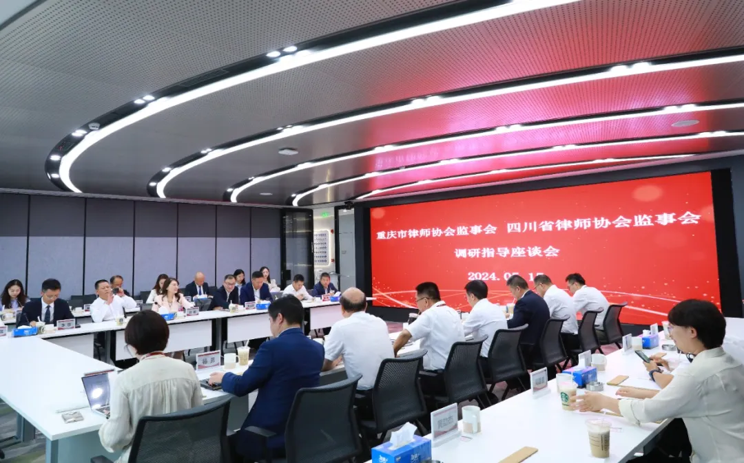 2024年5月15日下午,重庆市律师协会监事长彭静一行16人,在四川省律师协会监事长刘才伟等人的陪同下莅临明炬考察交流。明炬党委书记、主任王宗旗,监事长范自力,党委副书记、执委会委员霍子诗,执委会委员杨勇、沈宥希给予热情接待。