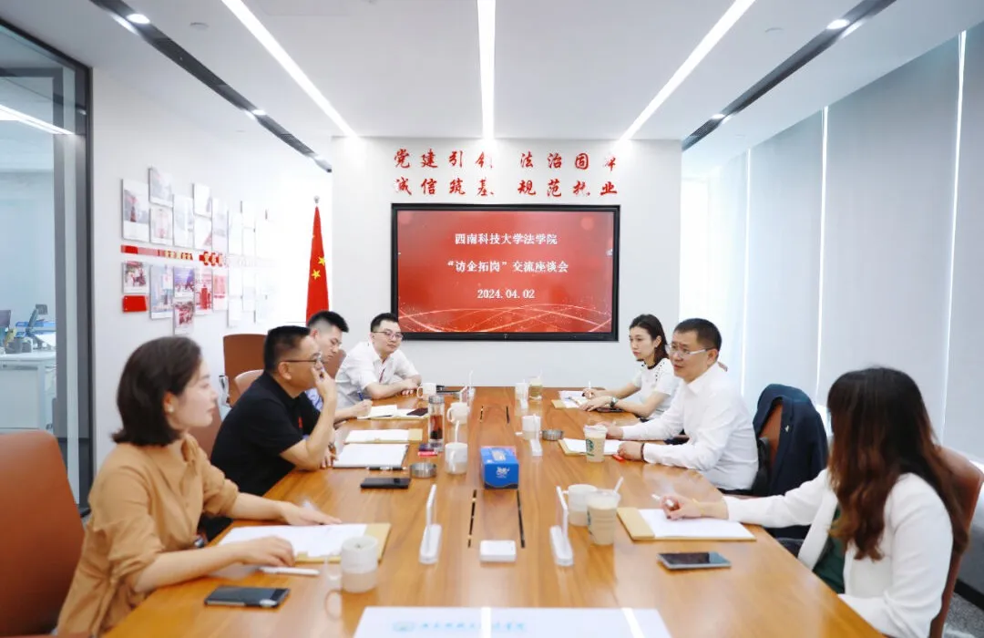 2024年4月2日,西南科技大学法学院院长何显兵,党委副书记、纪委书记刘丽瑶,团委书记李亚馨一行赴明炬开展“访企拓岗”专项行动,明炬党委书记、主任王宗旗,党委委员、执委会委员霍子诗,党委委员、执委会委员陈霞,执委会委员张杨给予热情接待。