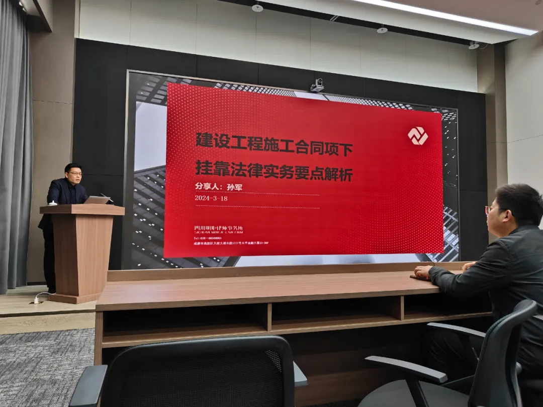 2024年3月18日下午,应浙江建投西南总部邀请,明炬合伙人孙军为其所属十余家子公司开展“建设工程施工合同项下挂靠法律实务要点解析”专题讲座。