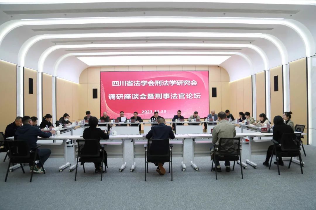 为深入了解刑事审判实务中的疑难问题,主动服务于科学决策和司法实践,推动刑法理论与审判实践相融合,2023年11月23日,四川省法学会刑法学研究会赴成都市双流区人民法院,就认罪认罚从宽制度适用等刑事法律实务疑难问题开展调研座谈会暨刑事法官论坛。会议由刑法学研究会会长白宗钊主持,明炬党委书记、主任王宗旗作为研究会副会长、学术委员出席会议。