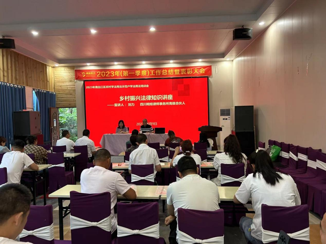 2023年6月9日,明炬高级合伙人刘力受邀参加成都市青白江区农业农村局主办的“2023青白江区农村学法用法示范户学法用法培训会”活动,并开展了“以案说法:话乡村振兴”专题讲座。成都市青白江区农业农村局相关人员和该区学法用法示范户共50余人参加了培训。