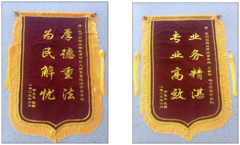 一面锦旗,一份信赖。近日,一起家事纠纷的当事人向明炬婚姻家事业务部案件代理人白新群律师、冯夏滢律师送来锦旗,锦旗上“厚德重法、为民解忧”“业务精湛、专业高效”的大字既传达了当事人对明炬律师的感谢,也体现了对明炬律师的认可。