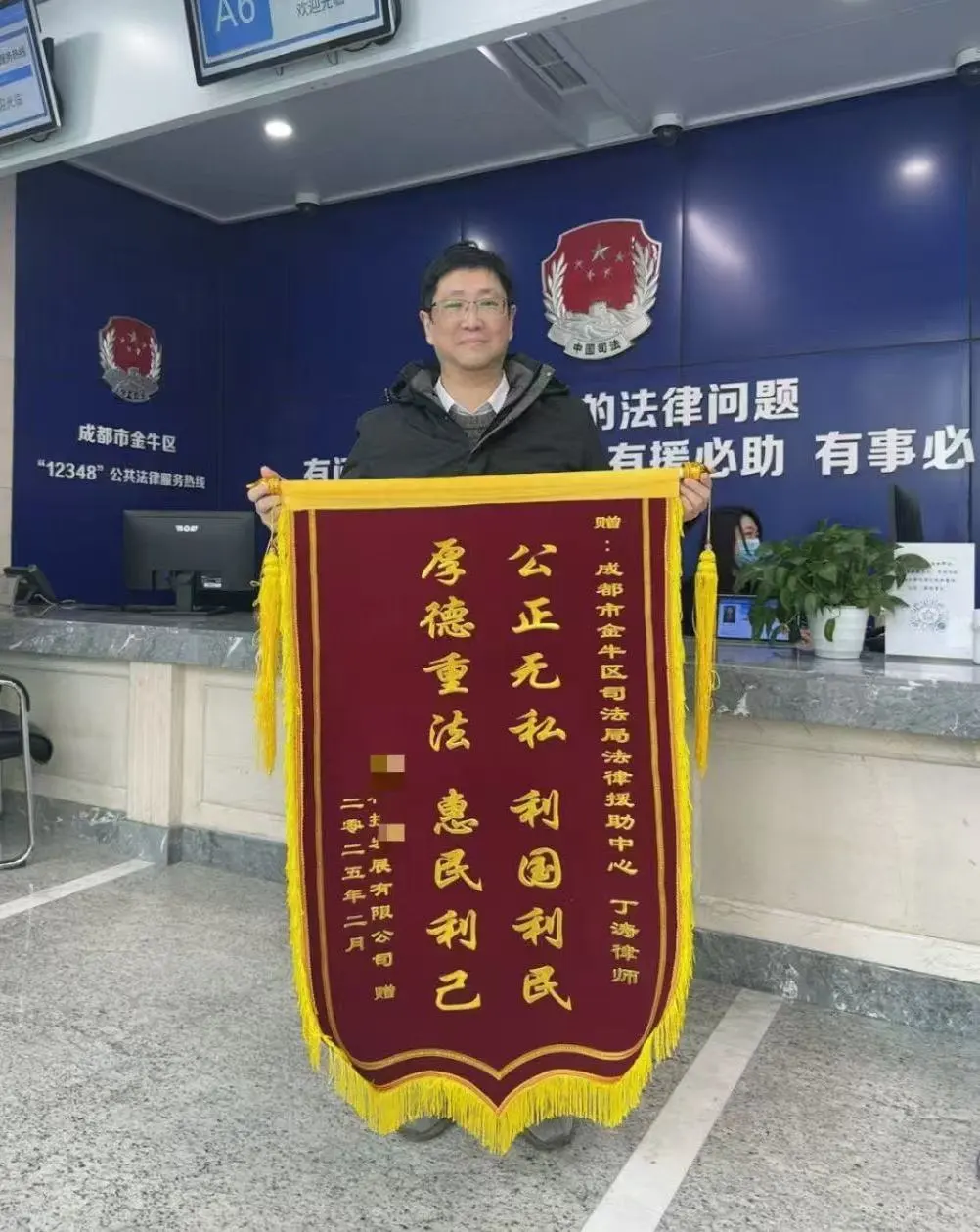 法律援助暖人心!公共业务部丁涛律师获咨询人赠送锦旗