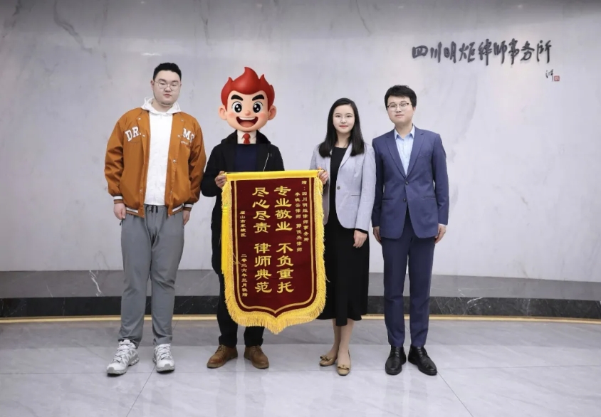 李晓云、郭俊杰律师获当事人赠送锦旗致谢