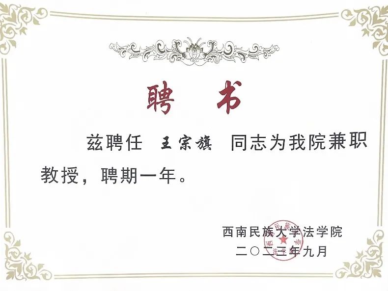 王宗旗、邱永兰、霍子诗、罗巧、陈霞、张锋律师被续聘为西南民族大学法学院兼职教授