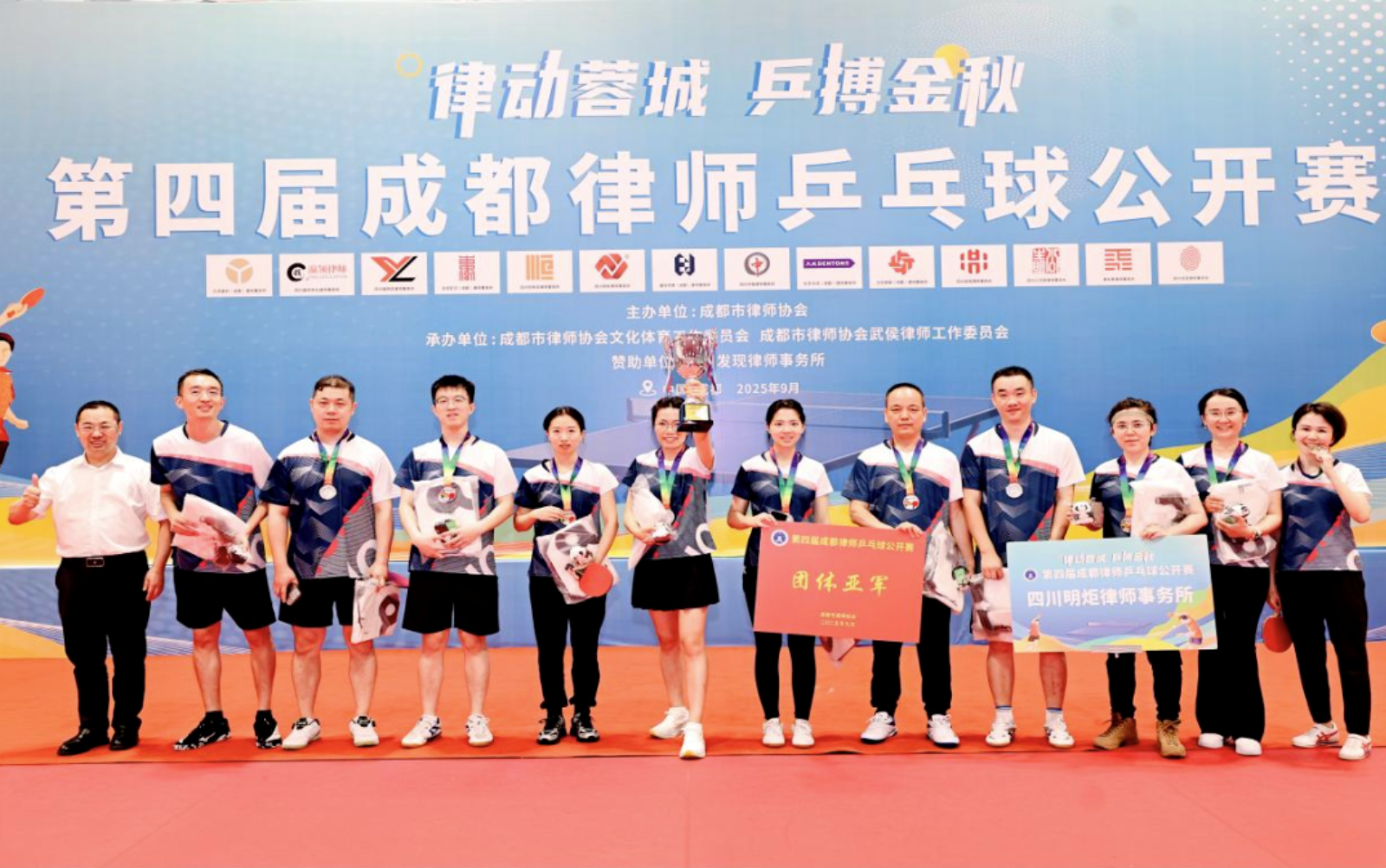 明炬律师斩获第四届成都律师乒乓球公开赛团体亚军及多项荣誉