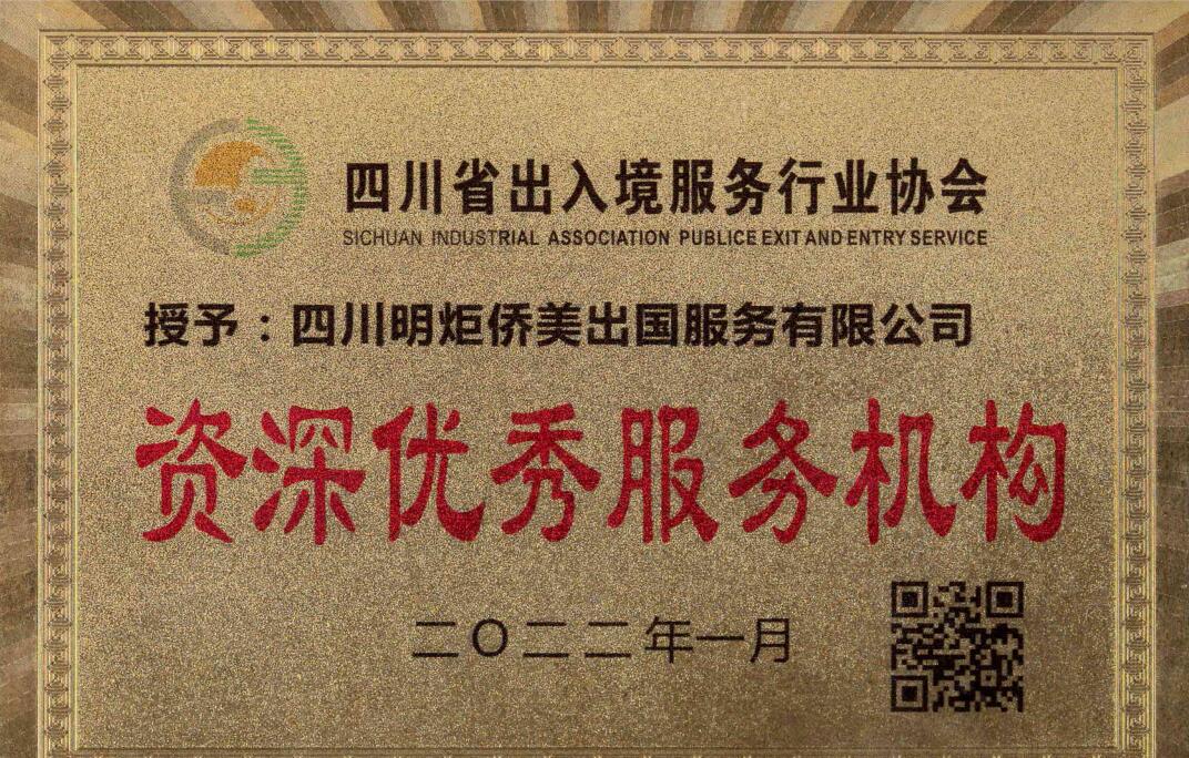 2022年1月,明炬荣获四川省出入境服务行业协会颁发的2021年度资深优秀服务机构奖。