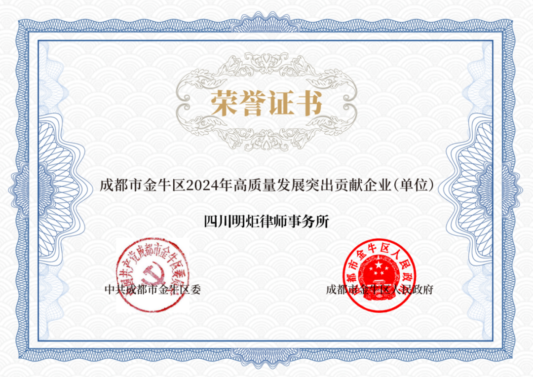 金牛区2024年度高质量发展突出贡献表彰:明炬独占法律服务领域殊荣