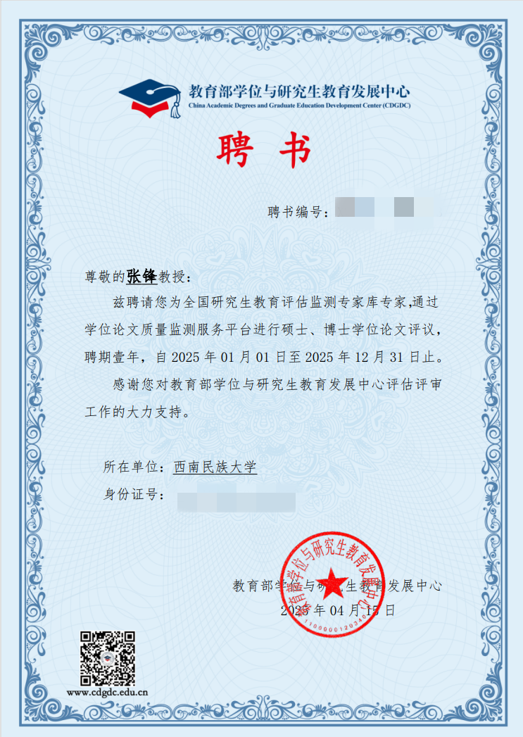 高级合伙人张锋获聘教育部全国研究生教育评估监测专家